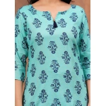 Women’s A-Line Kurta in Light Blue with Printed Cotton Blend Design